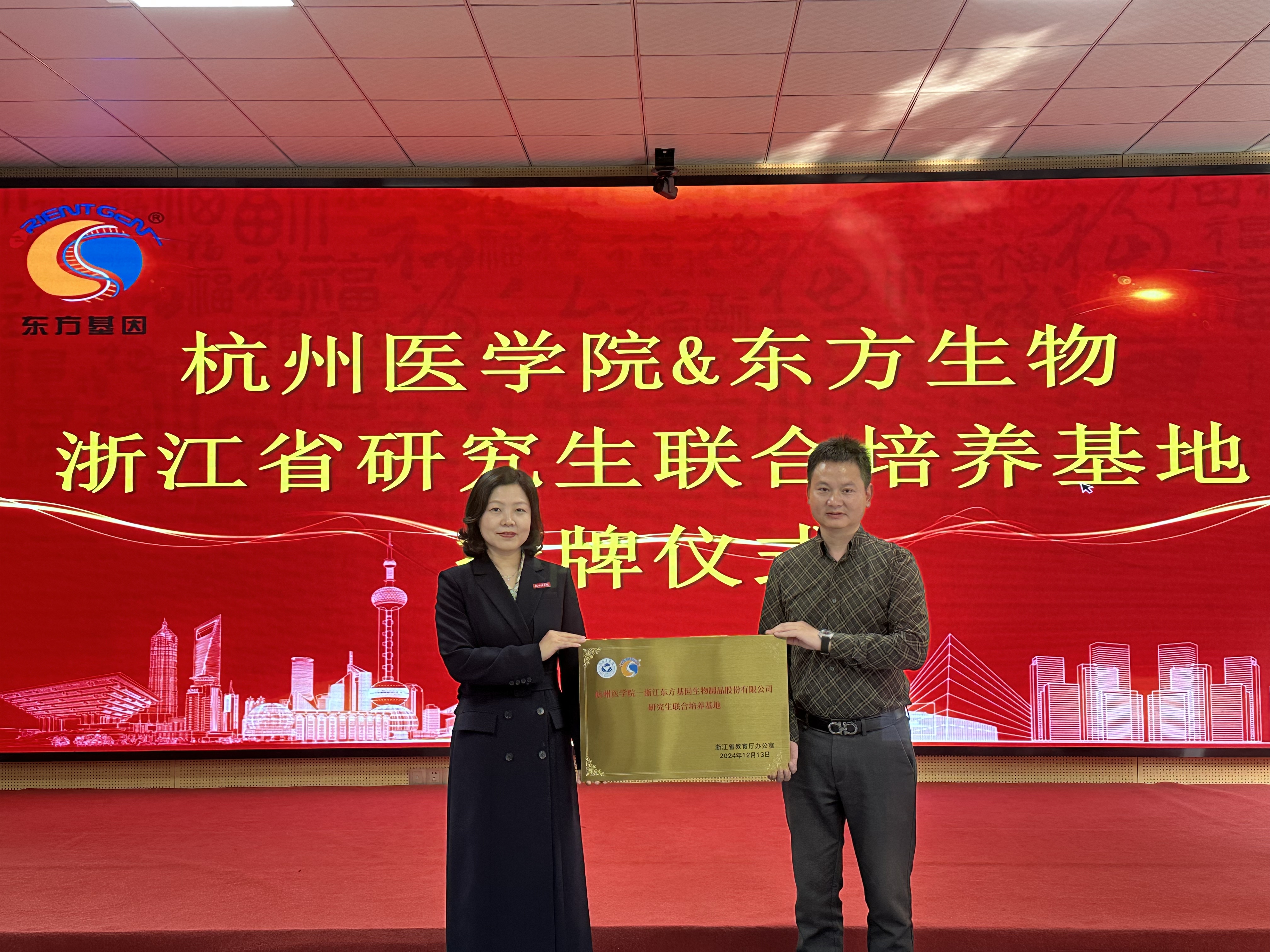 座谈会上,杭州医学院副校长陆绍红回顾了双方的合作历程。此前,学院已与东方基因签订实践教学基地合作协议,并顺利获批浙江省研究生联合培养基地,这一系列成果为双方进一步深化合作打下良好的基础。陆绍红副校长强调,此次走访旨在全方位推进研究生联合培养工作。一方面,优化“校企双导师制”,充分发挥学校导师的理论优势和企业导师的实践优势,为学生提供更优质、更全面的指导;另一方面,深化科研协同创新、课程共建、师资共享等领域的合作,精准对接企业对人才的多样化需求,助力学生实现高质量就业。