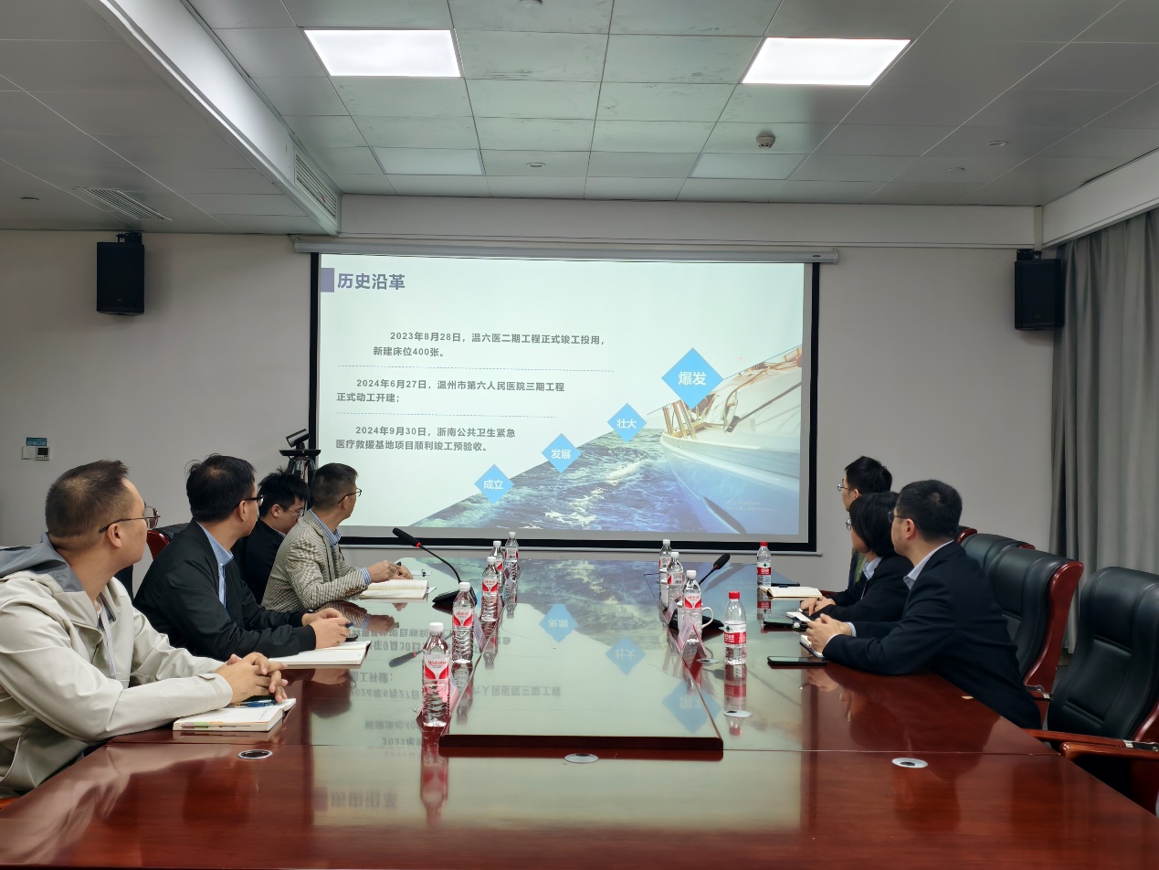 温州市第六人民医院副院长邵永强及相关部门参加了交流调研。交流会上,邵永强副院长首先系统介绍了医院在平台建设、科研实力与人才培养等方面的特色优势,全面展示了医院在临床服务与医学研究方面的特色与实力。