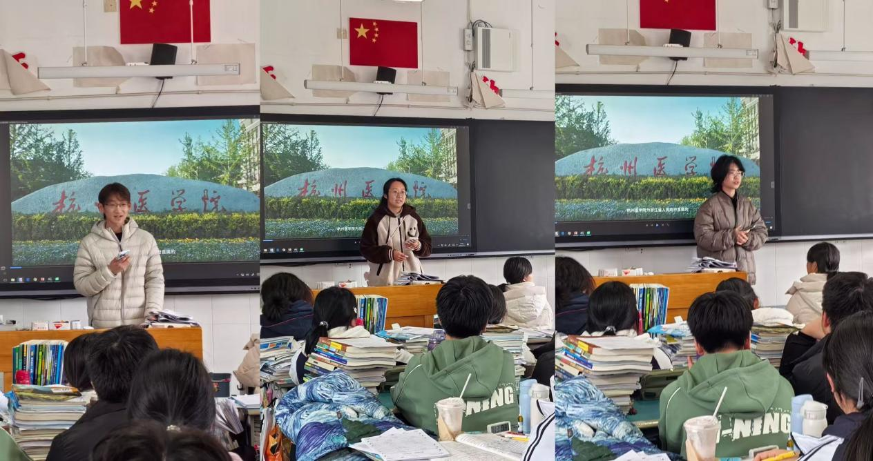 为进一步打通高校与高中人才培养衔接通道,帮助高中学生提前认知医学专业、明确升学方向,2026年2月13日,杭州医学院基础医学与法医学院“启星组”宣讲团黄未雨、裴泽俊、陈姝妤等三位杭医优秀学子,在吴振兴老师带领下,回到高中母校——宁海县风华书院,开展“杭医星探”主题宣讲活动。本次活动主要分为现场咨询和班级宣讲环节,风华书院的师生积极参与,活动取得了良好的宣传效果。