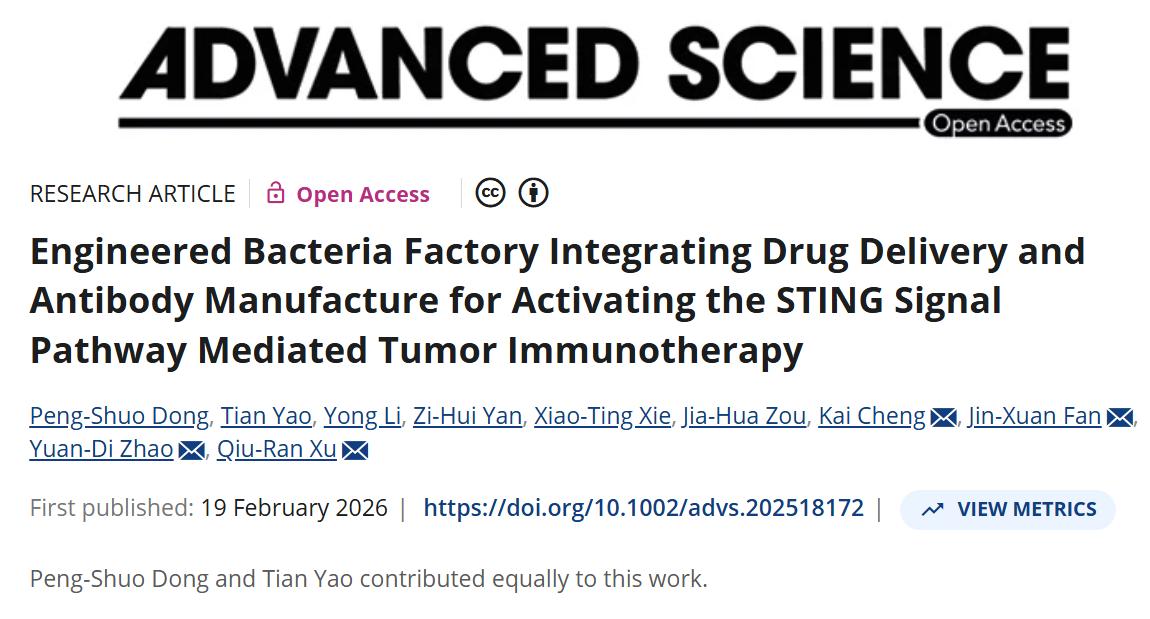 杭州医学院许秋然团队构建工程菌复合系统实现STING通路介导肿瘤免疫治疗